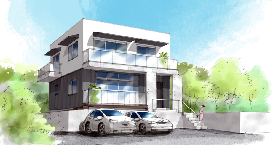 パースを描くものも、人が毎日笑顔で暮らせる建物を表現しようと努力します。
